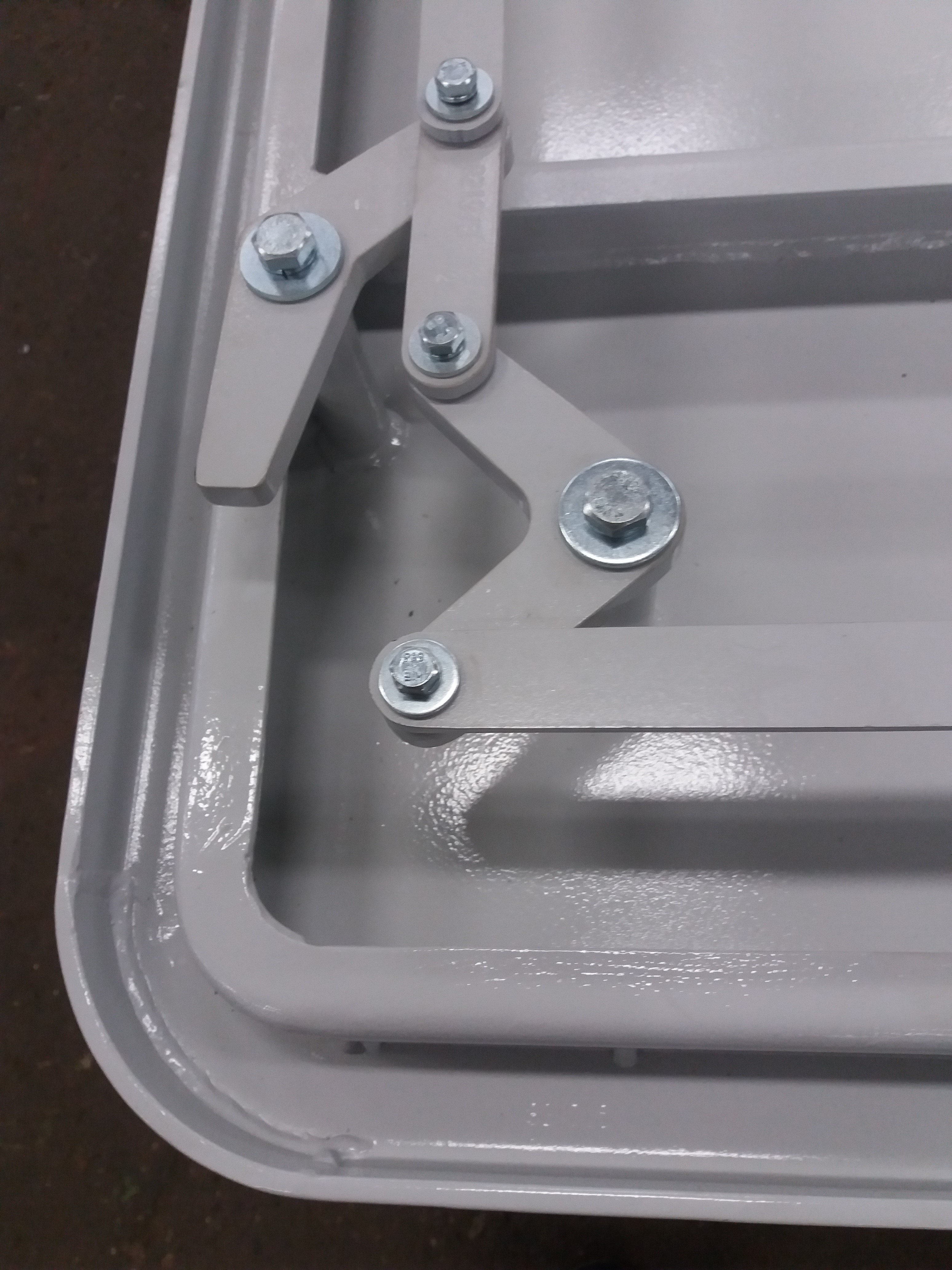 Börger Maritime Products spray-, weather- and  watertight doors are available in a wide range of measurements. Closing device: centeral operated with roller type closures from 2 op to 8 locking points. The closing device is executed in stainless steel.
